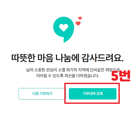 8️⃣ 경북 산불 피해 기부 완료 (기부내역 조회가 가능합니다)