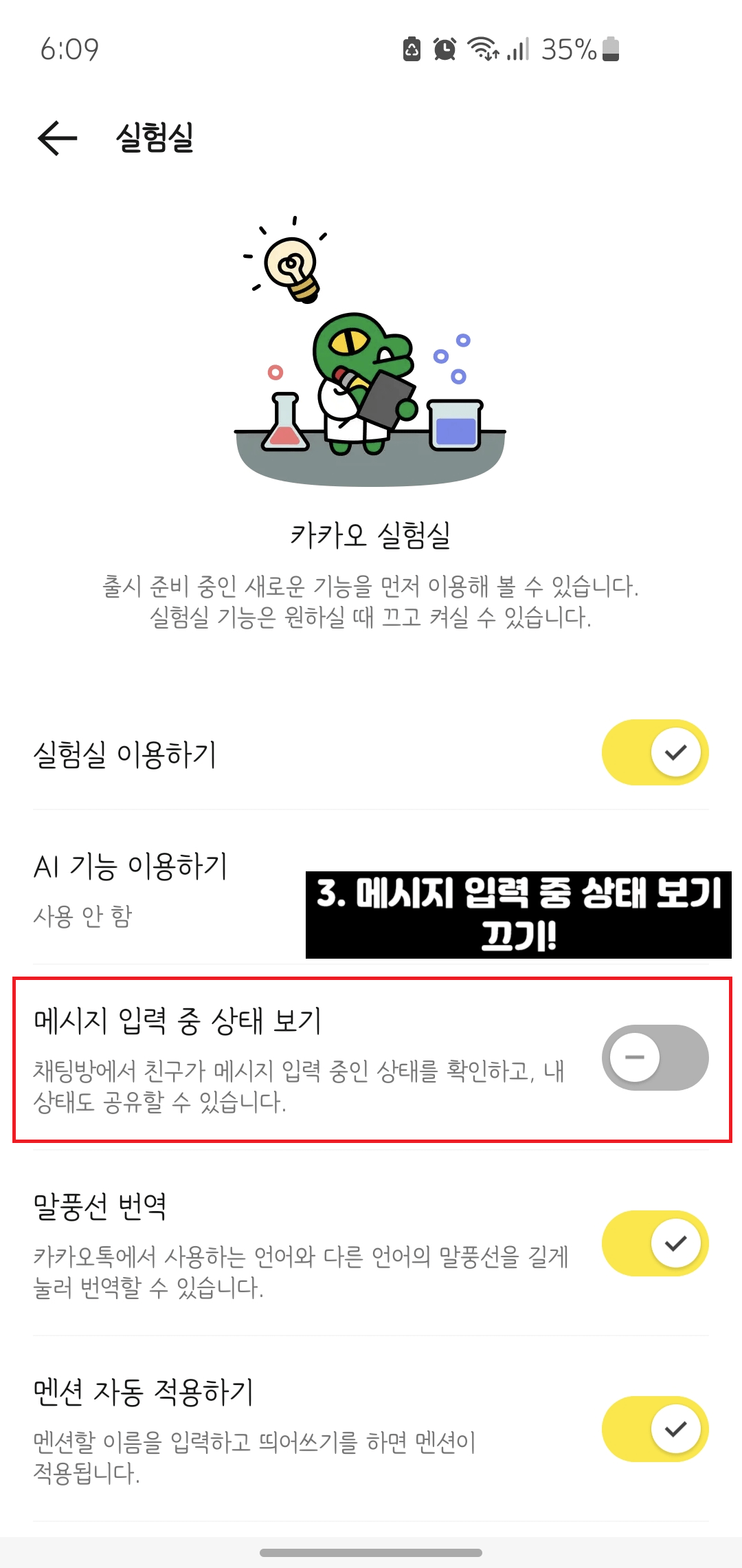 2. 카카오톡 입력중 끄는 방법