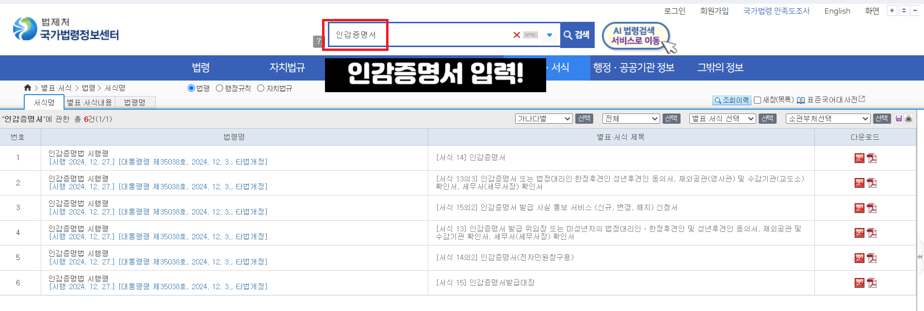 - 검색창에 ‘인감증명서’ 입력 후 검색