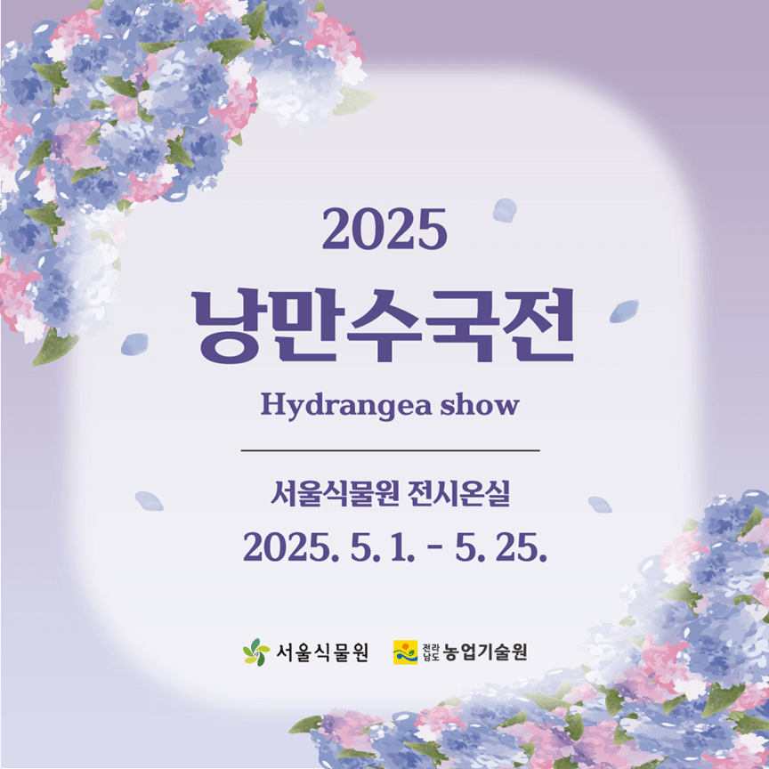 서울식물원에서는 5월 25일까지 여름꽃 수국을 테마로 한 ‘낭만수국전’을 진행하고 있어요. 핑크 아리, 모닝스타, 썸머스타 등 전라남도농업기술원에서 개발한 다양한 품종의 수국을 한자리에서 감상할 수 있고, 온실 안은 수국 향기로 가득해 산책만 해도 기분이 좋아지는 공간입니다.